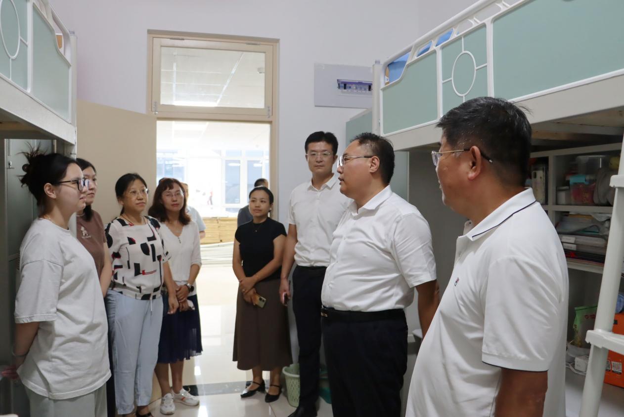 会后,龙希利前往公寓、食堂检查迎新准备工作。党委办公室、学生工作处、保卫处、后勤管理处(基建处)等相关部门陪同。