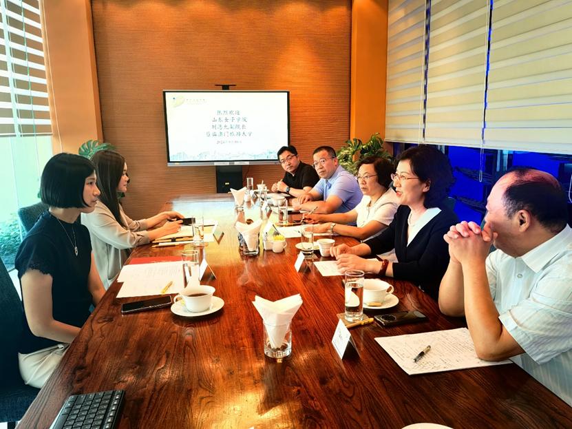 在澳门旅游大学,访问团与副校长吕剑英等进行座谈交流。刘恩允着重介绍学校旅游管理、社会工作、养老服务与管理等专业的教育教学情况,希望双方在旅游、酒店管理、女性教育与国际交流等领域开展交流合作。双方围绕学生就业创业、专业实习实践、环境建设与运用等进行探讨。