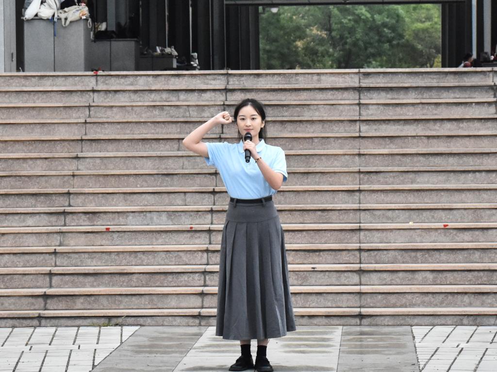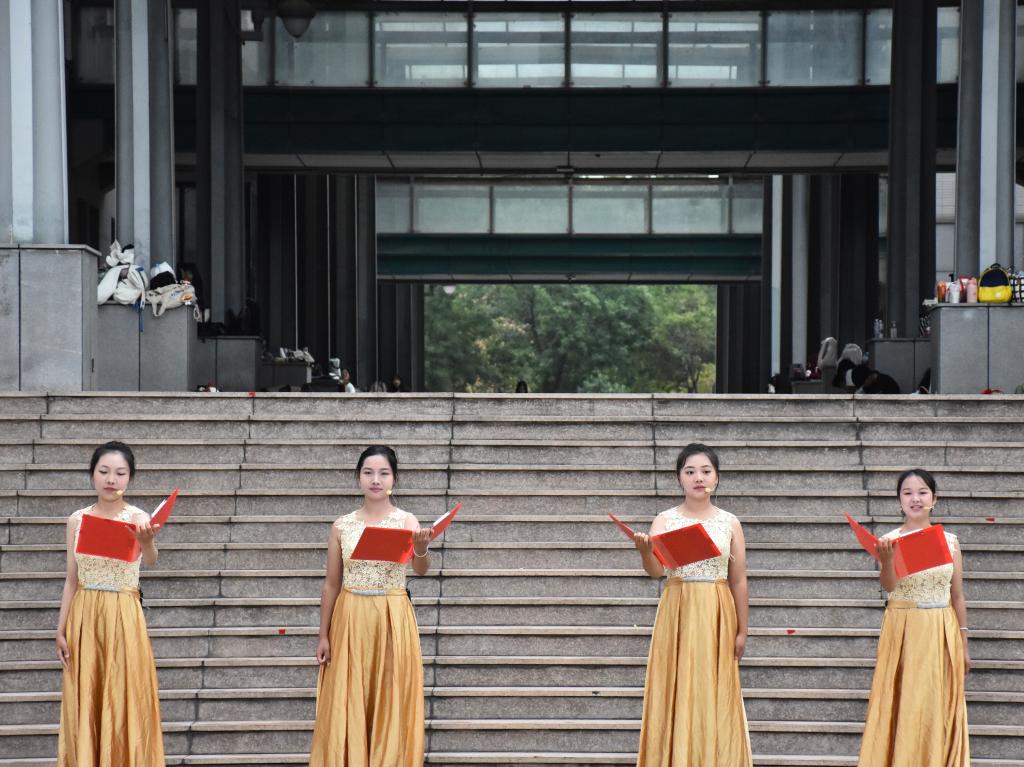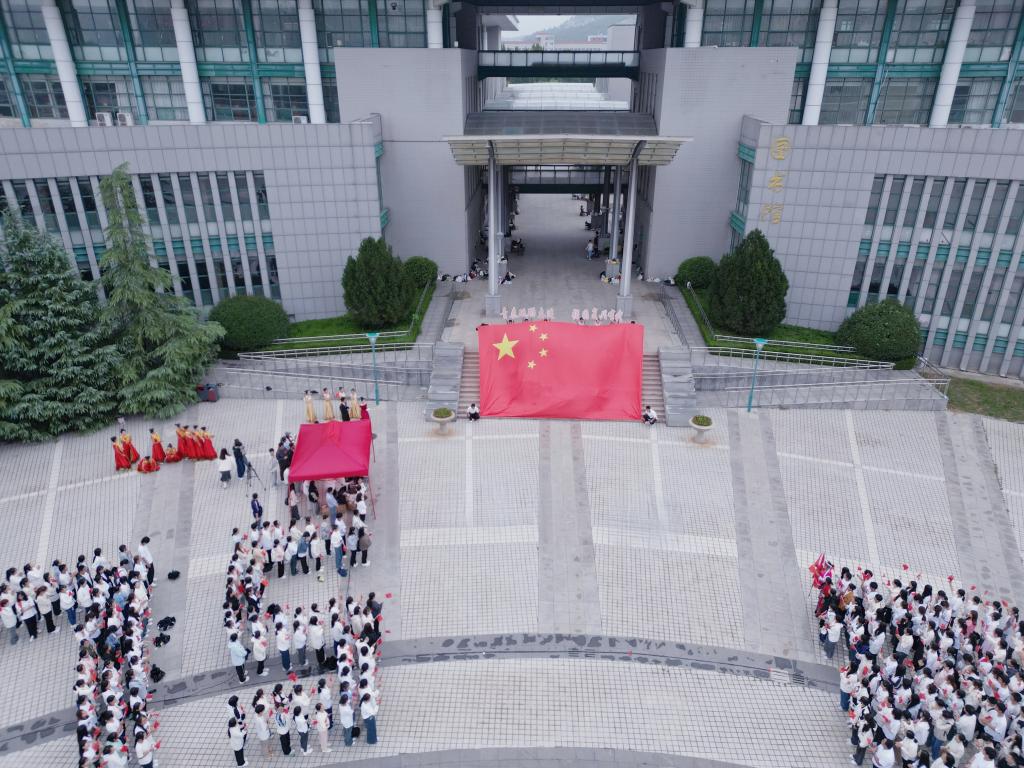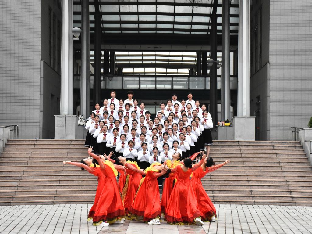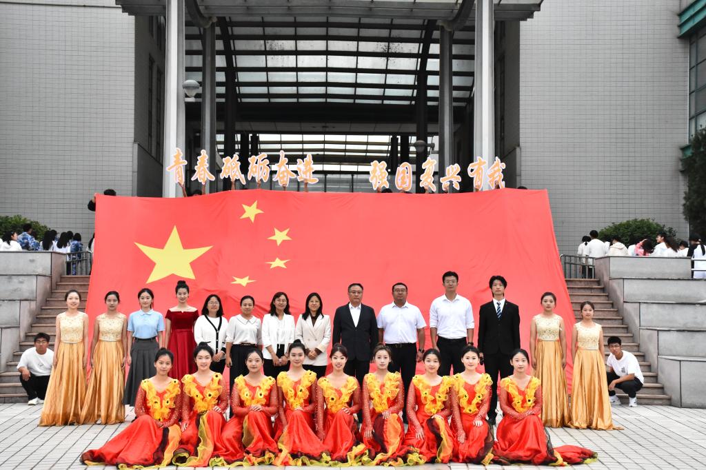 仪式上,诗朗诵《祖国颂》,声音洪亮,字字铿锵,深情地表达了对祖国母亲的无限热爱。歌伴舞《强国一代有我在》,歌声流转、舞姿蹁跹,心中的理想在巾帼广场唱响!最后,千名师生挥舞手中的国旗,深情唱响《我和我的祖国》,用歌声向祖国母亲告白,共同为中华人民共和国75周年庆生!