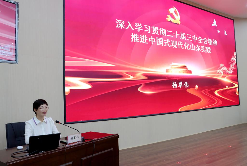 学习班期间,邀请济南市委党校杨翠伟教授作了题为《深入学习贯彻二十届三中全会精神推进中国式现代化山东实践》的专题辅导报告。