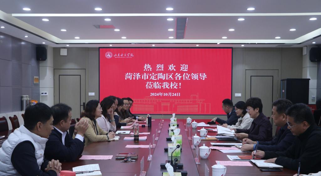李缨对杨艳玲等一行的来访热烈欢迎,并简要介绍了学校近年来在学科专业布局、创新人才培养、服务社会发展等方面取得的显著成效。她表示,学校自接到省教育厅重点帮扶菏泽市定陶区乡村振兴工作任务以来,高度重视与定陶区的合作,认真贯彻落实方案要求,为确保重点帮扶工作落地走实,组建由校领导牵头负责的项目专班,定期将各高校服务情况以简报形式按月汇报省厅,推动各高校在各自服务领域内,分工协作、共同发力,做实做细做好菏泽市定陶区的文旅融合与乡村振兴工作。