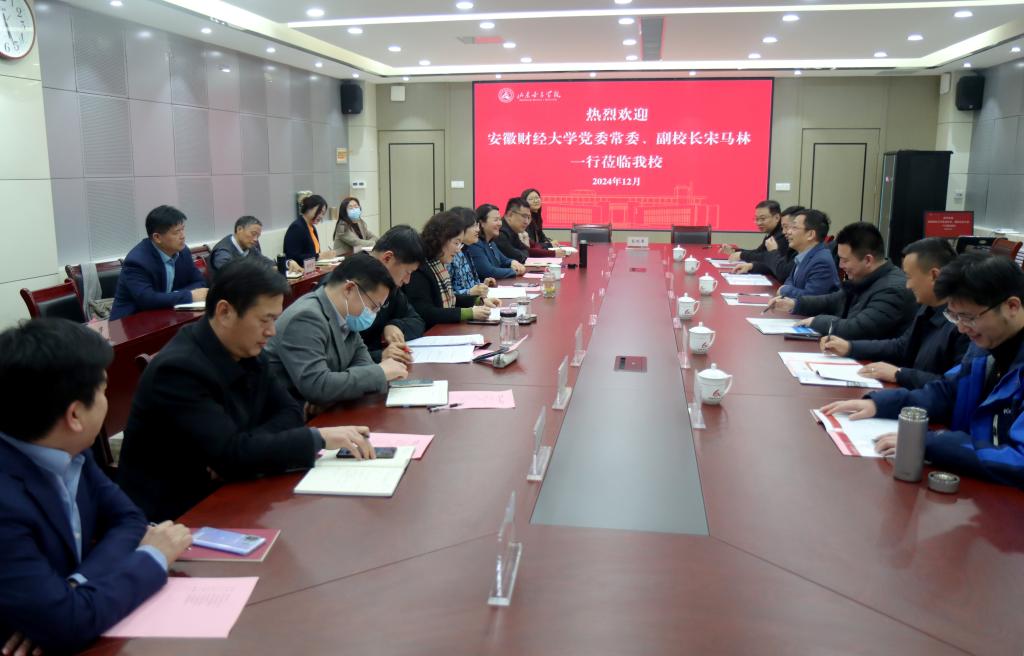 仪式上,李光红从办学历史、学科发展、人才培养、师资建设、社会服务等方面介绍了学校基本情况,希望增强两校的合作交流。宋马林介绍了安徽财经大学的基本情况,对学校在各领域取得的成绩表示赞赏,表示愿与学校进一步开展合作交流。双方表示,将进一步加强交流互访,相互学习、共享经验、共谋发展。