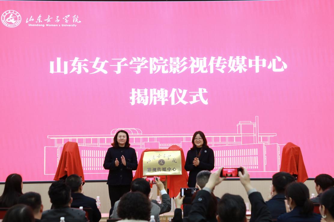 王之明和李缨共同为山东女子学院影视传媒中心揭牌。