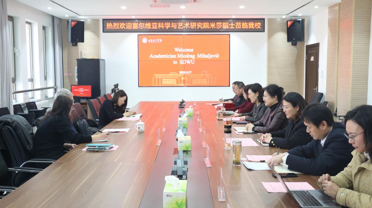 Miodrag Mihaljevi?院士介绍了塞尔维亚科学与艺术研究院的科研优势领域,表达了与山东女子学院在人工智能、数据科学、区块链技术及网络安全等领域开展合作的意愿。双方一致认为,在当前全球化的背景下,加强国际学术交流与合作对于提升学校的科研水平和人才培养质量具有重要意义。