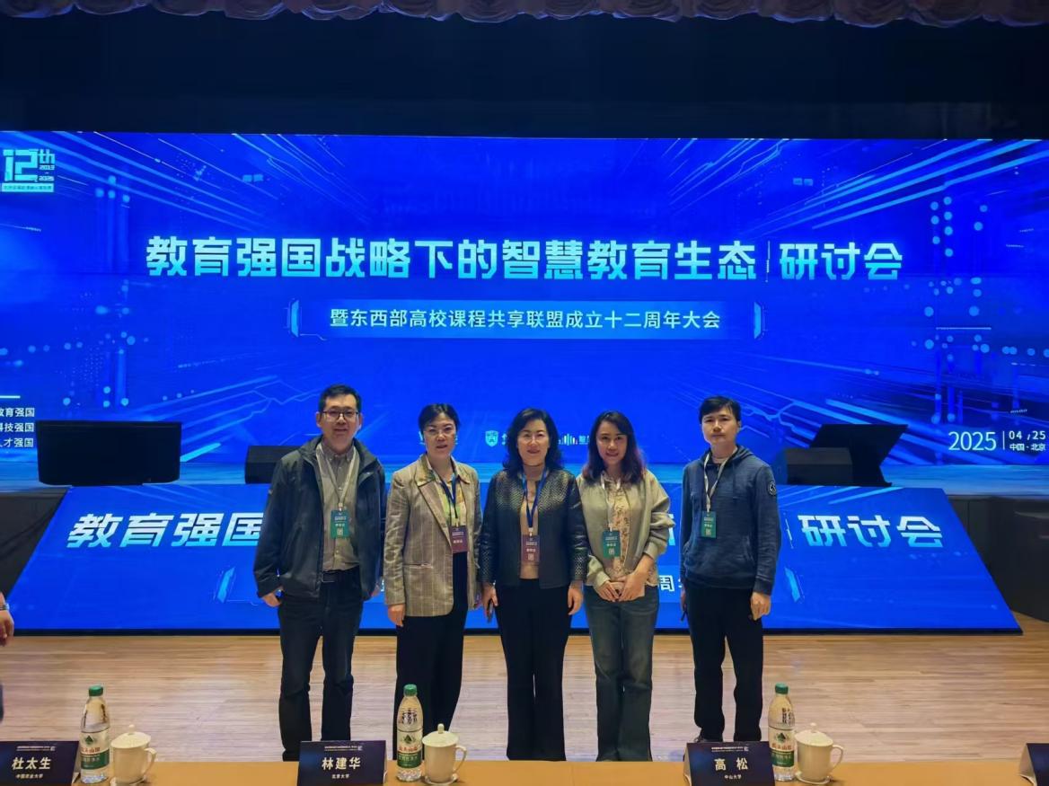 4月25日,东西部高校课程共享联盟成立第十二周年大会暨教育强国战略下的智慧教育生态研讨会在北京国际会议中心召开。来自全国各地教育专家、高校领导、专业带头人、行业企业等近2000人参加本次会议。学校副校长刘恩允率教务处及相关部门负责人一行作为联盟理事和受邀嘉宾单位参会。刘恩允参加联盟理事会议,并以“教育数字化转型要以人为本关注学生发展”为题,做了重点发言。