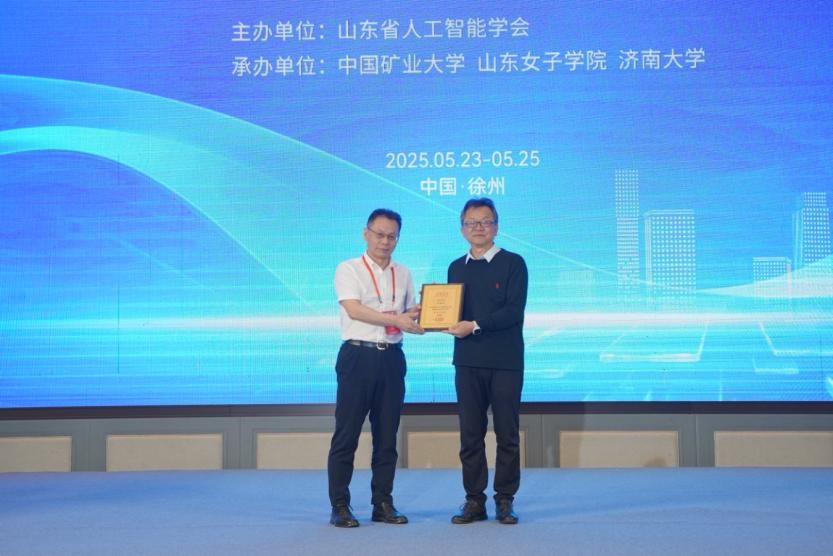 开幕式后,华南理工大学计算机学院院长陈俊龙、中国科学技术大学大数据学院院长陈恩红、西北工业大学自动化学院副院长刘准钆、四川大学教授彭玺分别以《大小模型协同创新技术与应用》《数据驱动智能:大模型性能与数据间的关联定律探索》《多源融合无人机智能目标感知》《外部知识引导的无监督学习》为主题做特邀主旨报告。大会为陈俊龙颁发山东省计算智能杰出贡献奖。