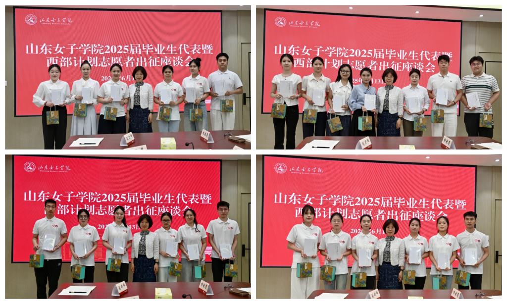 座谈会上,毕业生代表与西部计划志愿者代表也先后发言。满怀感激地回顾了在母校的点点滴滴,表达了对母校和老师的深深谢意。同时,也分享了自己的成长收获与未来规划,字里行间透露出对母校的眷恋和对西部征程的期待。他们表示,将牢记母校教诲,到基层去、到祖国最需要的地方去,展现女院学子的担当情怀。