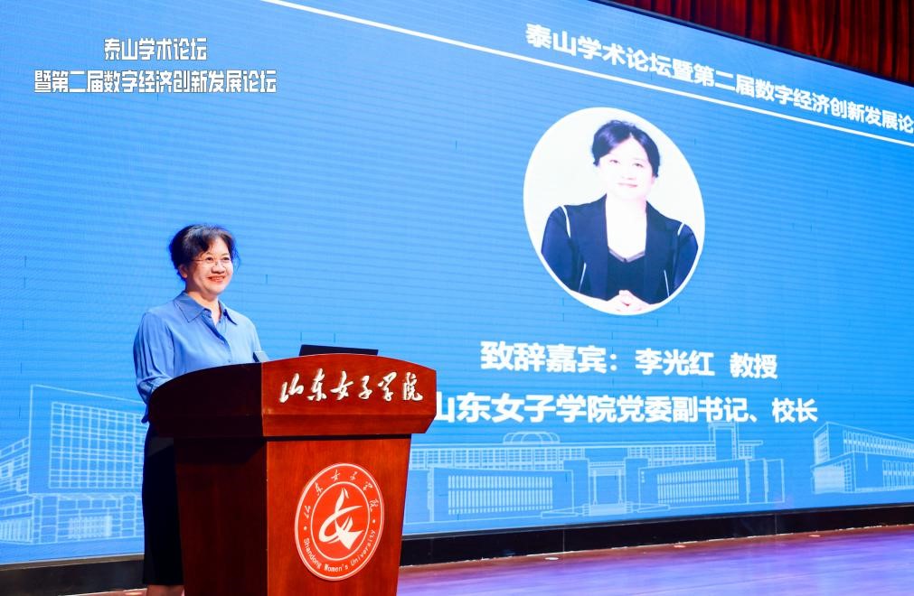 近日,由山东省教育厅、山东省数字经济学会、山东女子学院主办,山东女子学院经济学院、人工智能学院承办的泰山学术论坛暨第二届数字经济创新发展论坛,在图书馆二楼报告厅举行。党委副书记、校长李光红,山东省数字经济学会理事长陈月辉分别致辞。来自全国和省内70家高校、企事业单位的代表参会。党委委员、副校长李缨主持会议。