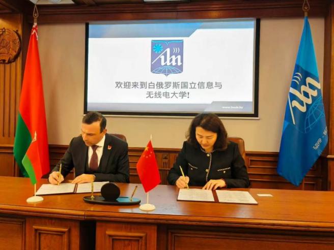 在白俄罗斯国立文化艺术大学,校长娜塔莉娅·卡尔切夫斯卡娅、科研副校长叶莲娜·科尔萨科娃、思政教育副校长尤利娅·佩尔西茨卡娅及国际交流处处长瓦季姆·萨马季亚等校领导出席座谈会。两校正式签署合作协议,该协议的签订将为双方开展合作交流、实施联合项目及深化中白文化纽带开辟新路径。会后参观了该校博物馆、图书馆、文化教育中心及体育文化中心。