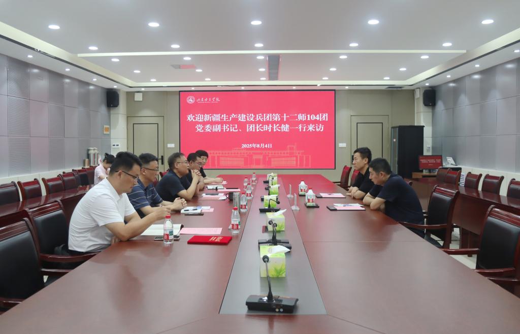 8月4日上午,新疆生产建设兵团第十二师104团党委副书记、团长,兵地融合发展轮台产业园临时党委副书记,一级调研员时长健一行来我校考察交流。学校党委副书记龙希利主持座谈会,学生工作处、团委、旅游学院相关负责人、马克思主义教师代表参加座谈。