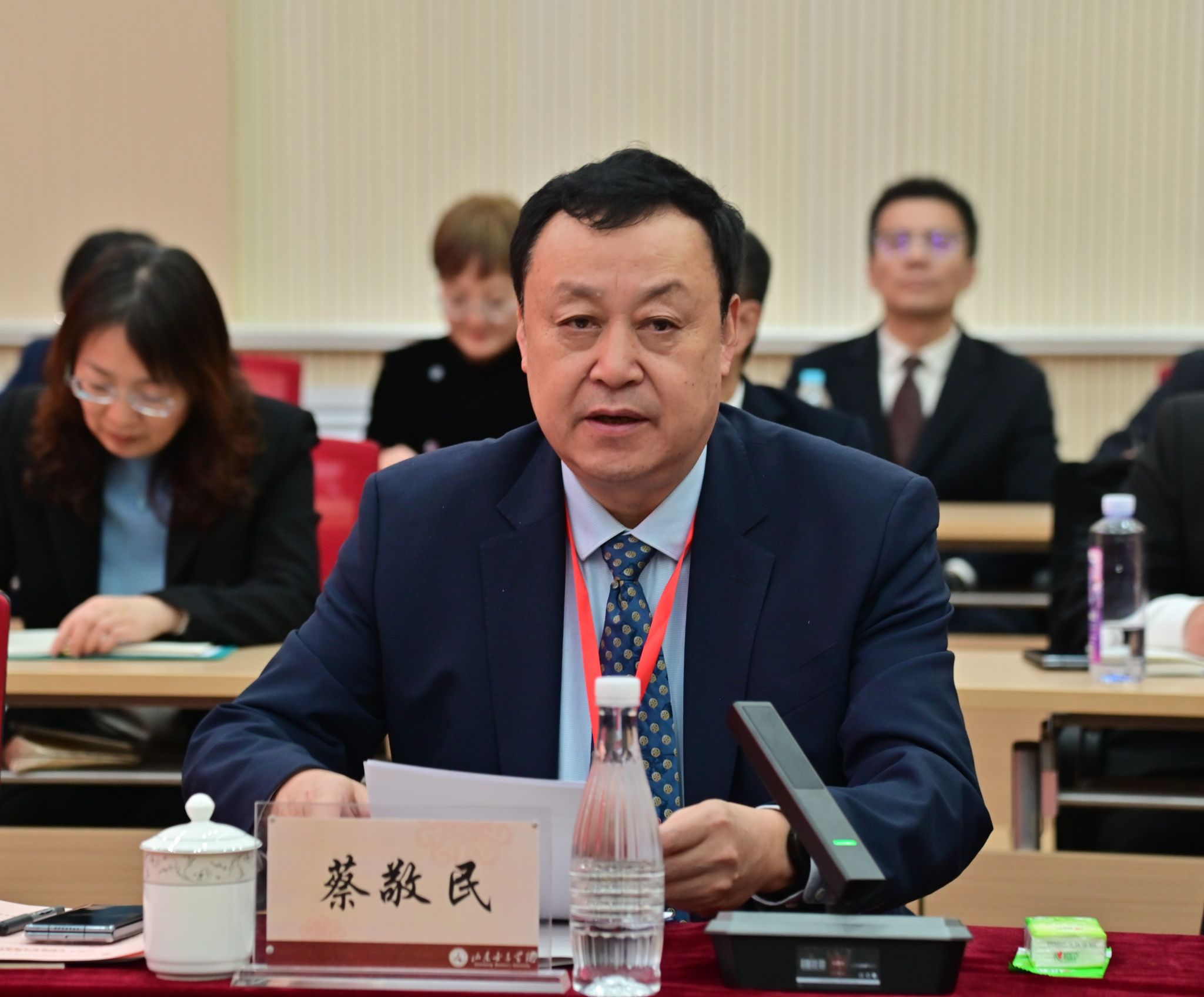 蔡敬民代表专家组交流整体意见,充分肯定了近年来学校本科教育教学工作取得的成绩。一是学校坚持党的全面领导,充分发挥党委统揽全局,协调各方的领导核心作用,以高质量党建引领学校各项事业高质量发展;二是完善四课堂贯通的思政育人体系,构建女院特色的大思政格局,推动课程思政和思政课程同向同行,实现思政工作格局破题重构;三是对接国家重大战略及山东十强优势产业集群发展需求,动态优化调整学科专业结构,提升了与山东省经济社会发展的适配度;四是创新人才培养模式,积极探索实验班、微专业等创新创业复合型人才培养新路径,打造了提升人才培养质量的强动能;五是坚持以学生发展为中心,筑牢社会责任与正确价值观的坚实根基,强化理想信念教育和女性综合素质教育,促进了学生全面发展;六是开展妇女研究,助力女性成才,在世界舞台上发出女院声音,形成了具有女院特色的妇女发展知识体系。坚持以马克思主义妇女观为指导,积极承担并参与妇女事业发展和妇女性别理论研究,主动引领先进性别文化,推动了妇女事业发展与家庭建设。