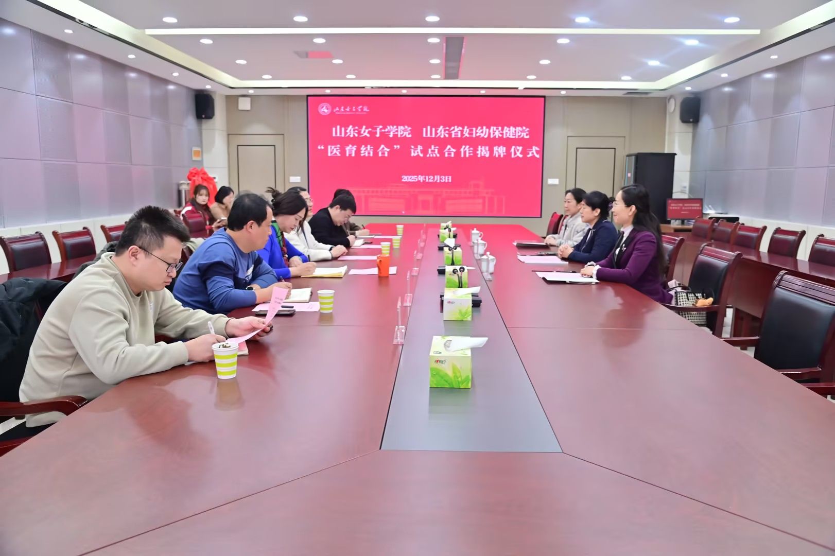 12月3日下午,学校幼教集团与山东省妇幼保健院“医育结合”试点合作揭牌仪式在办公楼第三会议室举行。学校党委委员、副校长李缨,山东省妇幼保健院党委委员、北院区院长李燕出席揭牌仪式。山东省妇幼保健院健康教育科及学校合作发展处、后勤管理处、教育学院等部门单位负责同志参加仪式。