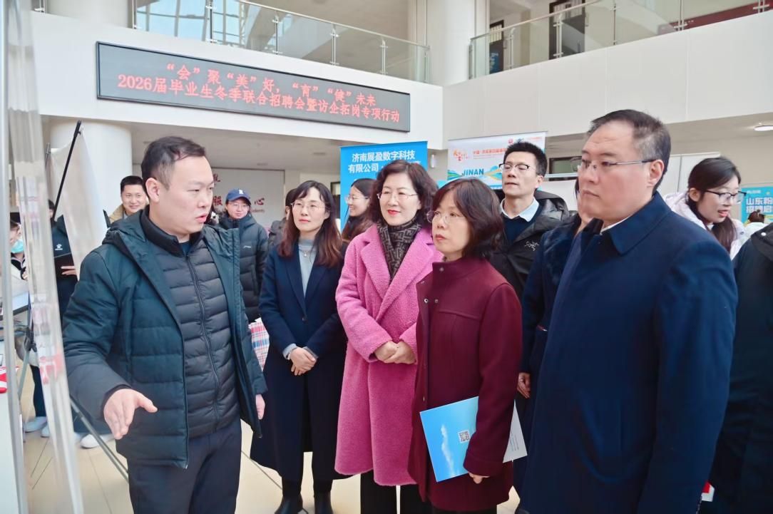 12 月25日,学校同步举办两场2026届毕业生冬季专场招聘会,其中,“‘会’聚‘美’好 ‘育’‘健’未来”专场招聘暨访企拓岗专项行动,由社会发展学院、教育学院、音乐学院、健康养老学院联合承办;“暖冬聚贤?职为你来”冬季专场招聘会,由数据科学与计算机学院、传媒学院、人工智能学院携手举办。学校党委书记吕晓黎,党委副书记龙希利,副校长刘恩允到招聘会现场调研指导,学生工作处及相关学院负责人陪同。