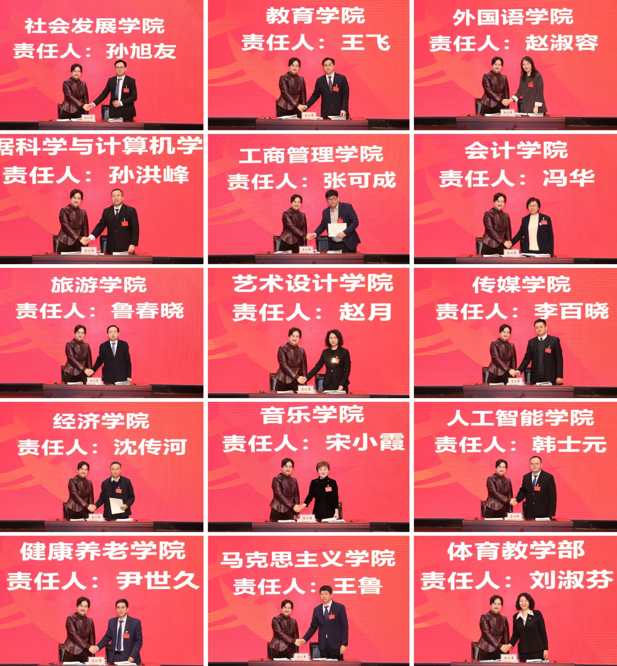 李光红代表学校与15个院部学科建设负责人签订重点学科建设任务书,与4个部门签订目标管理任务书。