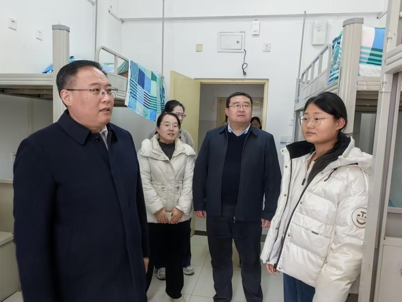 龙希利实地查看公寓环境卫生、设施设备、安全及服务保障情况,现场听取学生工作处明升体育:学生返校报到、返校后思想动态摸排、新学期思政教育安排、公寓日常管理服务等工作汇报,详细了解各环节筹备细节,并就细化管理、优化服务提出具体要求。