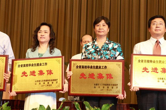 会议学习贯彻了胡锦涛总书记在中央政治局第三十二次集体学习时的重要讲话精神,通报了2011年度全省就业工作目标责任制考核情况和全省高校毕业生就业工作检查评估情况,签订了“十二五”就业目标责任书并安排部署今后一个时期全省就业工作。会议还对全省高校毕业生就业工作先进集体进行表彰奖励。我校和山东大学、石油大学(华东)、中国海洋大学等25所高校荣获“山东省高校毕业生就业工作先进集体”称号。院长范素华代表我校上台领奖。
