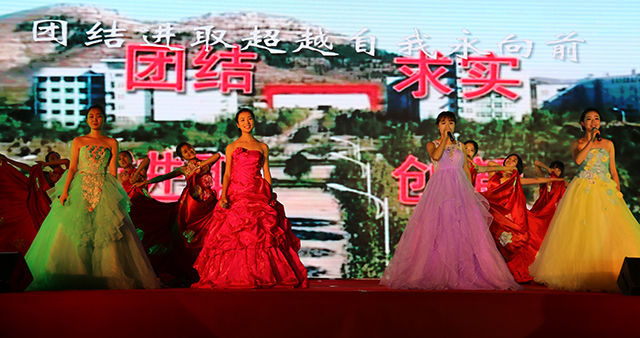 晚会在梅花桩英姿飒爽的表演中拉开帷幕。整场晚会分为“歌舞青春”、“致敬历史”、“梦想启航”三大篇章,街舞社团热情的舞蹈点燃了现场气氛;第三届校园十佳歌手联合演绎《当你老了》,暖心的视频和温情的歌声让不少同学眼眶湿润;话剧《女院的那些日子》,表达了老生们对新同学珍惜青春的美好期望;舞蹈《茉莉花》、《一片羽毛》、《月狐吟》带来力度与柔美的双重体验;《礼仪操》则强化了同学们对行为养成的重视;《游击队之歌》、《革命经典歌曲串烧》、《少年中国说》是女院人对抗日战争胜利70周年的献礼;互动知识问答精心准备的女院选题和各学院教师代表演唱的《青春歌曲串烧》更是将晚会推向了高潮。值得一提的是,整场晚会的插入视频制作精致切题,与各篇章主题呼应,为晚会增色不少。全场共同唱响《山东女子学院之歌》,表达新一代女院人对过去的感恩和对未来的期盼,晚会顺利落下帷幕。