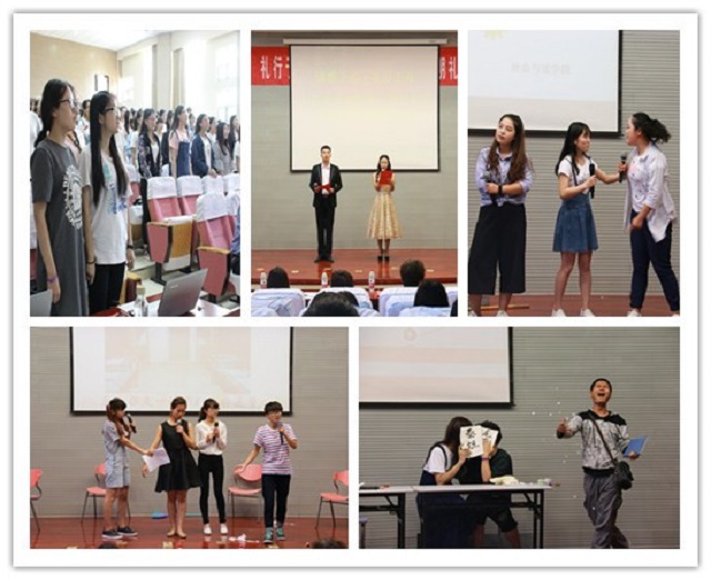 伴着极富童趣的旋律,开场舞蹈《弟子规》拉开比赛帷幕。为表达在迎评促建过程中养成文明习惯、遵守文明礼仪的决心,全体学生在主持人带领下庄严诵读倡议书。随后,来自各二级学院的九支参赛队伍紧扣大学校园文明礼仪的主题逐一展示了自编自演的情景剧,贴近生活的剧情、幽默诙谐的表演赢得了观众阵阵掌声。其中,社会与法学院的参赛作品《文明宿舍》以矛盾、冲突、和解为主线,生动有趣地诠释了“宿舍是我家,爱护靠大家”的生活理念;教育学院的参赛作品《奇葩学姐》诙谐幽默,在理想与现实的冲突中讲明了年轻就要奋斗、人生须早立目标的道理;艺术学院的作品《看完这本书》以独具特色的哑剧形式及夸张的动作表演呼吁大家遵守课堂纪律,进而启发大学生对人生的深层次思考。各参赛作品构思新颖、主题鲜明、寓意丰富,表达了青年学生对各种不文明现象的强烈不满以及对文明健康的校园生活的向往和追求。