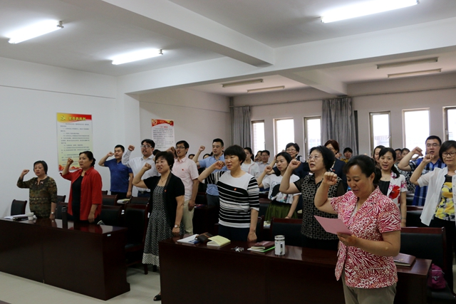 党课结束后,郭翠芬带领参加学习的全体党员面向党旗重温了入党誓词。 (田万里)