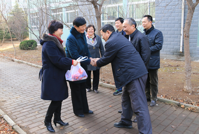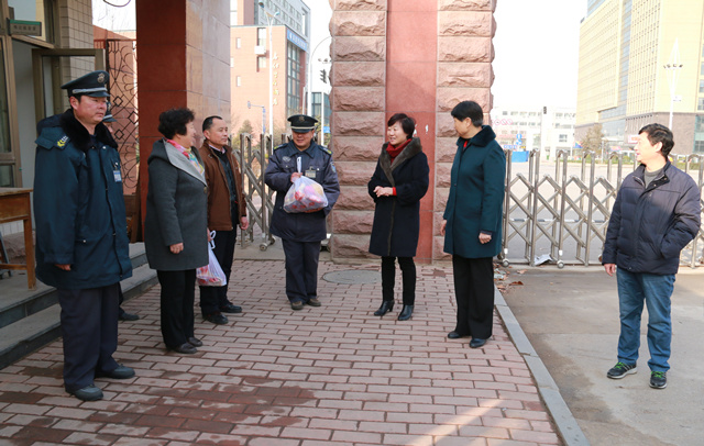 2月17日,农历腊月二十九,节日气氛正浓。上午9点,学校党委书记郭翠芬、院长范素华、党委副书记宿建沛、副院长贺兴利在党办院办、保卫处、后勤管理处、科技产业管理处等部门负责人的陪同下,深入长清校区和玉函路校区,看望慰问了春节期间坚守岗位的一线值班人员。