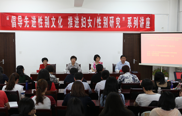 5月19日下午,由山东女子学院妇女/性别研究与培训基地主办,妇女研究所承办,学生处、社法学院、工会协办的清照讲堂?“倡导先进性别文化 推进妇女/性别研究”系列讲座启动仪式暨《家庭暴力的法律应对》学术讲座在办公楼第四会议室举行。山东女子学院党委书记郭翠芬、中国社科院社会法研究室主任薛宁兰研究员和青州市妇联主席刘瑞宏出席会议。山东女子学院科研处、妇女研究所、学生处、学报编辑部负责人以及社会与法学院80余名师生参加了会议。会议由科研处负责人主持。