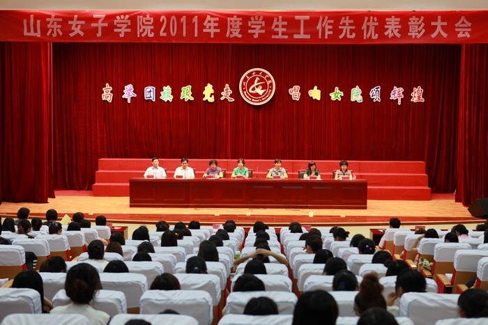 5月31日下午,由学生处、校团委联合举办的山东女子学院2011年度学生工作先优表彰大会暨大学生合唱比赛在我校图书馆二楼报告厅取得圆满成功。学校领导孙秀丽、范素华、王淑霞、宋兆静、赵胜村、汪琦、贺兴利出席大会,学校有关部门负责人和二级学院分管学生工作的党总支书记、团总支书记、辅导员、获奖学生代表参加了大会。表彰大会由宿建沛副书记主持。