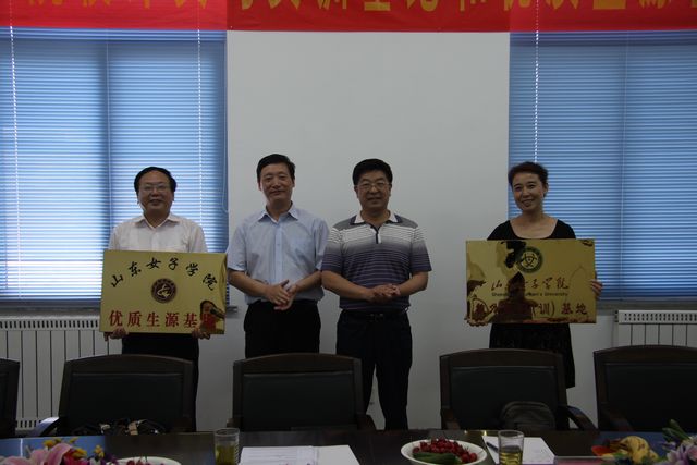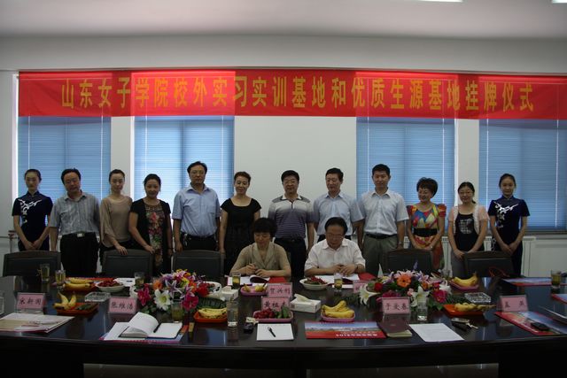 2012年6月19日上午,山东女子学院与济南艺术学校举行了隆重的“实习实训基地”、“优秀生源基地”签约及挂牌仪式,建立了我校第一个“优秀生源基地”。我校副院长贺兴利、济南市教育局副局长黄祖杰、济南艺术学校党委书记于爱春、校长张维浩、副校长孟燕、副校长宋新国出席本次签约仪式,我校招生就业指导处负责人、教育学院负责人及教育学院部分教师参加了仪式。