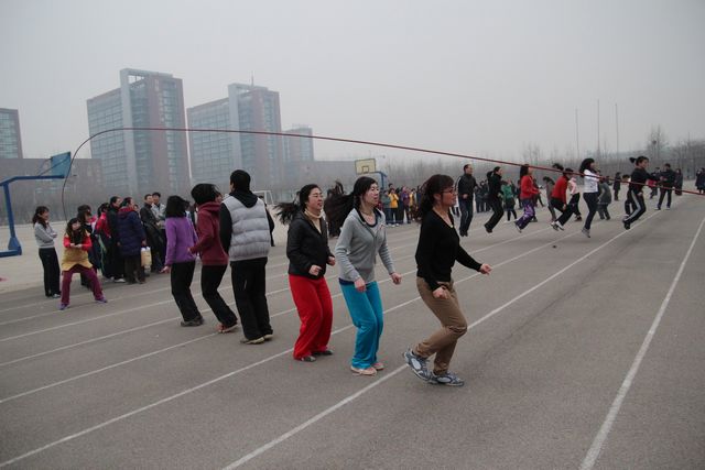 3月15日下午,学校妇委会组织的庆三八女教工跳绳比赛在田径场举行。共有13个代表队参加了集体项目比赛,138名女教工参加了个人项目比赛。学校党委书记孙秀丽、院长范素华带领全体校领导到场观战助威。