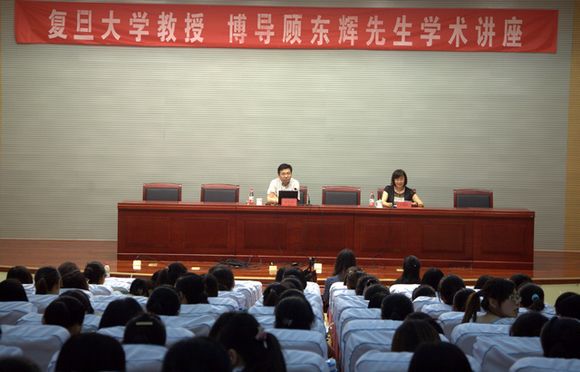 2012年6月8日,复旦大学教授、博导顾东辉应邀前来我校作了题为“社会工作的宏观形势和社工人员的基本素养”学术报告并受聘为我校客座教授。学校党委委员、副院长王淑霞主持了会议,社会与法学院全体领导班子成员、教师和学生参加了报告会。