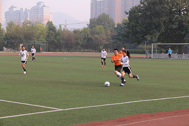 仪式结束后,山东女子足球队与我校教职工足球队举行了友谊比赛。(曹斌)