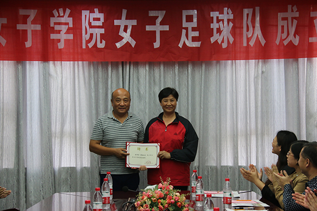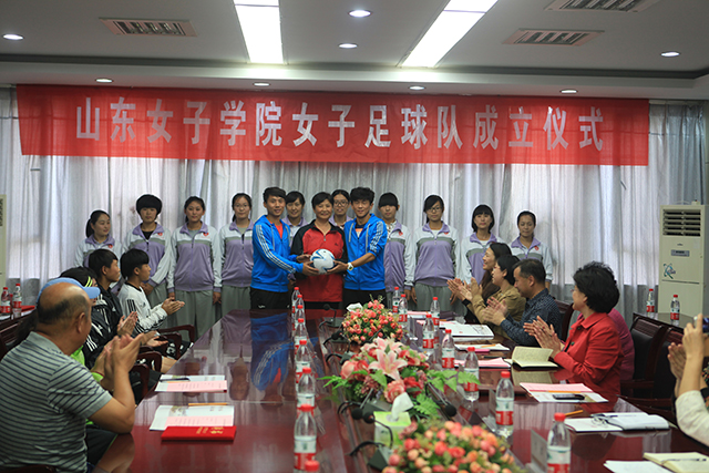 范素华为殷铁生颁发了客座教授聘书,并为山东女子学院女子足球队授球。她指出,作为山东唯一一所全日制普通本科女子高校,学校积极创造条件,开设足球课程,开展校园足球活动,组织足球交流活动,培养学生足球兴趣,有力地推动了学校足球文化建设。我校女子足球队的成立对于培养女大学生的坚强意志和团队合作精神具有重要意义,相信在殷铁生教练的指导和山东省女子足球队的帮助下,我校的女子足球队一定会不断发展壮大。