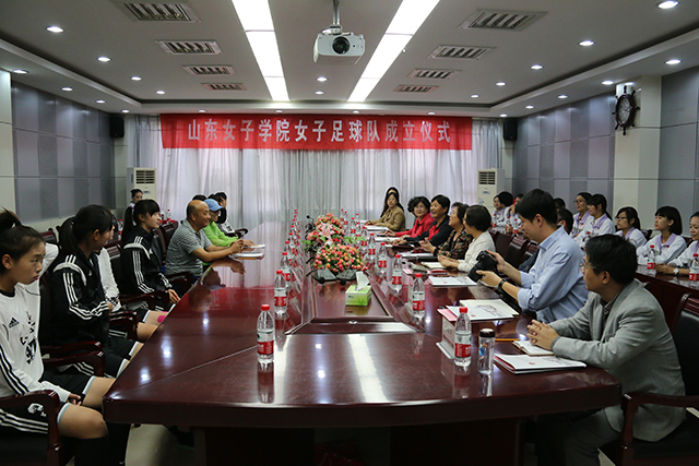 仪式上,殷铁生对山东女子学院女子足球队的成立表示祝贺,并简要介绍了山东省女子足球队的基本情况。他认为,山东女子学院女子足球队的成立对于促进高校女子足球运动的发展有着积极意义,希望足球队员们刻苦训练、挑战自我,努力追寻、实现足球梦想。他表示,山东省女子足球队将不断加强与我校的互动交流,为我校女子足球队提供技术支持和指导。