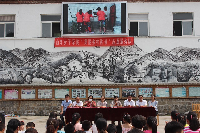 7月24日,范素华院长到淄博市博山区池上镇中郝峪村为我校“美丽乡村建设”社会实践基地揭牌,博山区政府副区长段迎春,池上镇党委书记李信忠、镇长陈建峰出席仪式,艺术学院与校团委负责人、辅导员和“美丽乡村建设”志愿服务队队员以及中郝峪村的小学生和村民参加了本次活动。