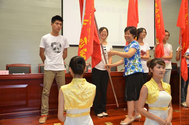 在热烈的氛围中,校领导为即将出征的社会实践的团队授旗,拉开了山东女子学院2012年大学生暑期“三下乡”社会实践活动的序幕。