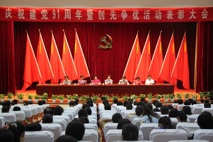 6月28日下午,庆祝建党91周年暨创先争优活动表彰大会在我校图书馆二楼报告厅隆重召开。学校领导孙秀丽、范素华、宿建沛、王淑霞、宋兆静、赵胜村、汪琦出席了会议,学校全体党员参加了会议,会议由党委副书记、院长范素华主持。