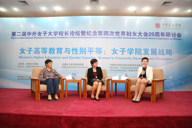 10月13日—14日,第二届中外女子大学校长论坛暨纪念第四次世界妇女大会20周年研讨会在北京召开,来自美国、韩国、日本、意大利等国家和国内的40余所女子高校、妇女干部学校校长围绕“女性高等教育与性别平等:女子大学发展的战略思考”这一主题展开了讨论。范素华院长在会上作了题为“全球化背景下女子院校的机遇与挑战”的主旨发言,学校办公室、招生就业处、发展规划处等部门的负责同志参加了会议。