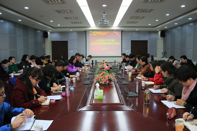 3月24日上午,我校学生工作部署暨共青团工作交流会在办公楼第三会议室召开。学校党委副书记宿建沛出席会议,山东师范大学、齐鲁工业大学和山东交通学院三所高校的团委书记应邀出席会议,我校党委组织部负责人、各二级学院分管书记、学生处和团委全体人员、全体辅导员参加了会议。