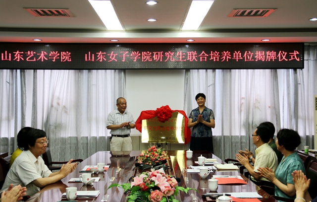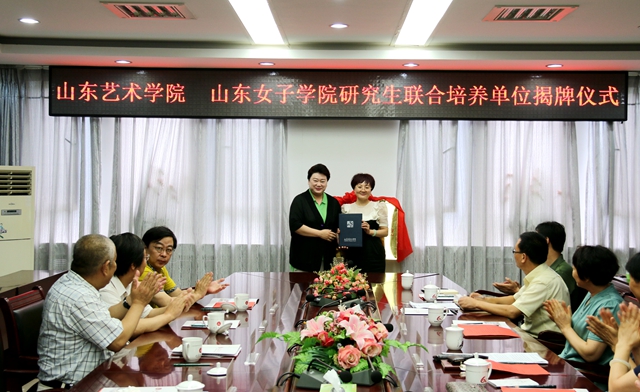 7月22日上午,学校在第三会议室隆重举行山东艺术学院——山东女子学院研究生联合培养单位揭牌仪式。山东艺术学院院长张志民、副院长刘晓静,山东女子学院校长范素华、副校长王淑霞出席仪式,仪式由王淑霞主持。张志民和范素华共同为研究生联合培养单位揭牌,刘晓静向山东女子学院联合培养导师宋小霞教授颁发了导师聘书。山东艺术学院研究生处、音乐教育学院负责人以及我校科研处、人事处、教务处、发展规划处及各二级院部负责人参加了仪式。