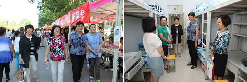 学校校长范素华、党委副书记宿建沛、副校长贺兴利来到学生注册处、各学院报到处、公寓等迎新点,检查迎新工作情况,看望前来报到的新生及其家长。校领导与新生和家长亲切交谈,对新生表示热烈欢迎,同时慰问了现场工作人员和大学生志愿者。学校相关部门负责人一同来到迎新现场。