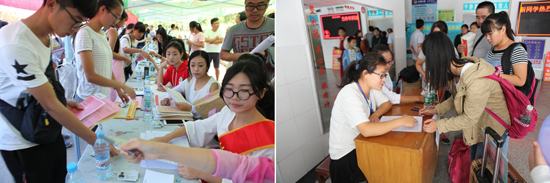 在各学院迎新点,精简快捷的报到流程,温馨周到的志愿服务,各具特色的迎新方式,充分体现了不同学院、专业的特点,使新生一入学就备感心安,并感受到了一种从未体验过的专业文化氛围。以人为本、绿色畅通的迎新工作得到广大新生和家长的一致好评。