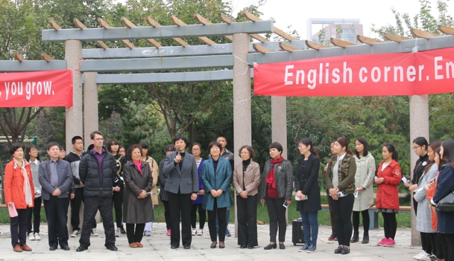 10月27日下午,外语角活动新址启动仪式暨外语角两周年纪念活动在巾帼广场西侧校外语角新址举行,学校领导范素华、宿建沛出席活动,相关部门负责人和师生代表参加活动。