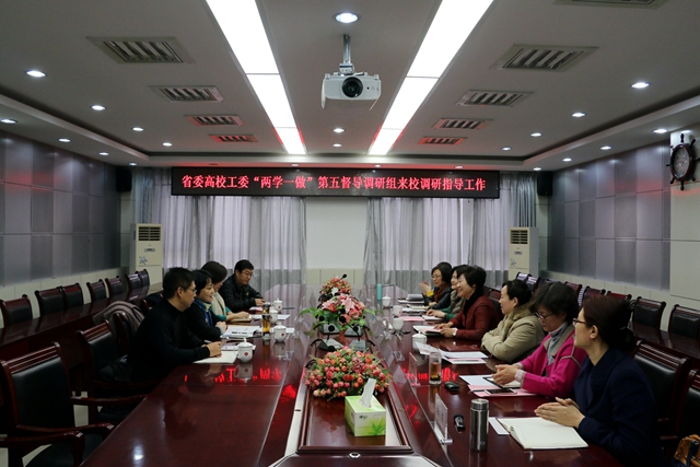 12月15日,省委高校工委第五督导调研组组长窦爱民等一行四人,到校督导调研“两学一做”学习教育和基层党建重点工作任务落实情况。党委书记郭翠芬主持督导调研汇报会,纪监审办公室、党委组织部、党委宣传部、学生工作部(处)等部门负责人参加会议。
