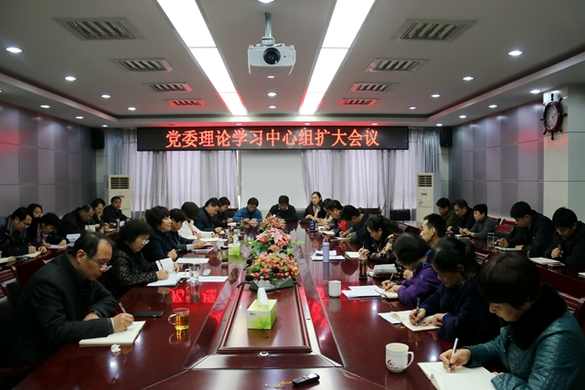 12月27日下午,学校党委理论学习中心组(扩大)会议在办公楼第三会议室召开,会议传达学习了习近平总书记在十八届六中全会和全国高校思想政治工作会议上的重要讲话及有关文件精神。党委书记郭翠芬主持会议并讲话。党委理论中心组成员及各部门、单位党政负责人参加了会议。