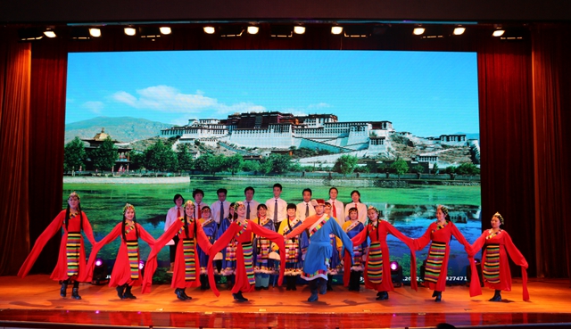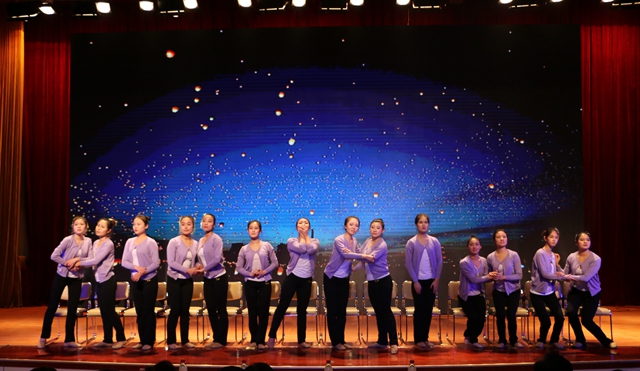 演出结束后,学校领导上台亲切慰问演职人员并合影留念。