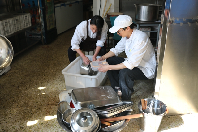 食堂的工作人员一大早就开始洗洗涮涮。锅碗瓢盆被他们刷的锃亮。新学期,食堂的师傅说,他研究了好多新菜品,迫不及待的想做给同学们吃。