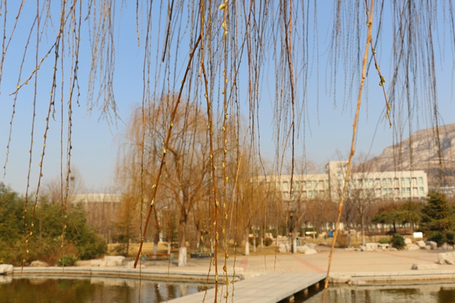 镜心湖畔的垂柳在春风中吐露嫩芽,校园一片生机勃勃的景象。2017年,我们与女院一起,撸起袖子加油干!(杨兴魁)