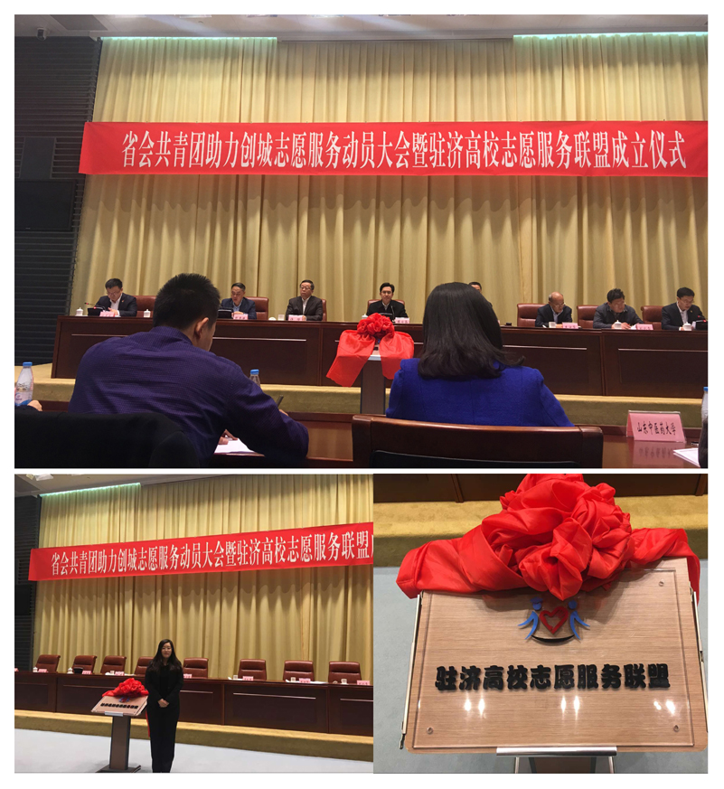 3月3日,省会共青团助力创城志愿服务动员大会暨驻济高校志愿服务联盟成立仪式在济南市龙奥大厦举行,我校作为首批驻济高校志愿服务联盟的成员单位受邀参加。共青团山东省委书记陈必昌,市委常委、市总工会主席王以才,市人大常委会副主任许强,市委宣传部副部长、市文明办主任彭寿谦,团市委副书记王友进出席活动。