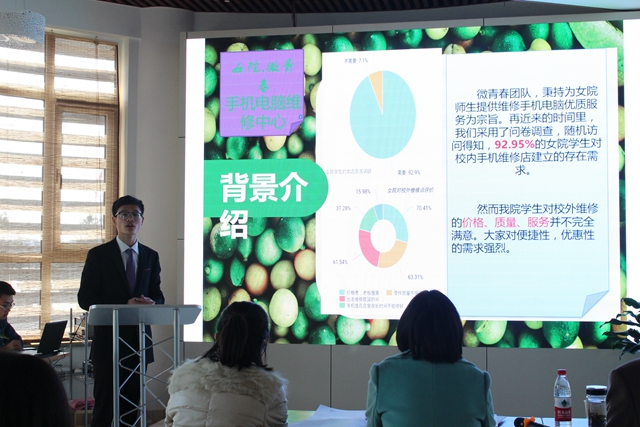 经过前期申报和初审,共有20余个大学生创业项目参加本次评审会。范围主要涵盖了文化传媒产品、手工设计、互联网平台等领域,部分项目创意新颖、科技含量较高。评审分为团队项目展示和答辩两个环节。团队展示过程中,各团队负责人围绕项目概况、市场营销计划、创业团队、财务分析、风险评估等方面展开阐述,评审老师根据各项目的投资预算、市场前景、与专业契合度、发展方向等提问,为项目进一步的发展提出了良好的建议。本次大学生创业项目评审既为大学生创业示范基地发展注入了新鲜血液,又为在校学生提供了创业实战机会。