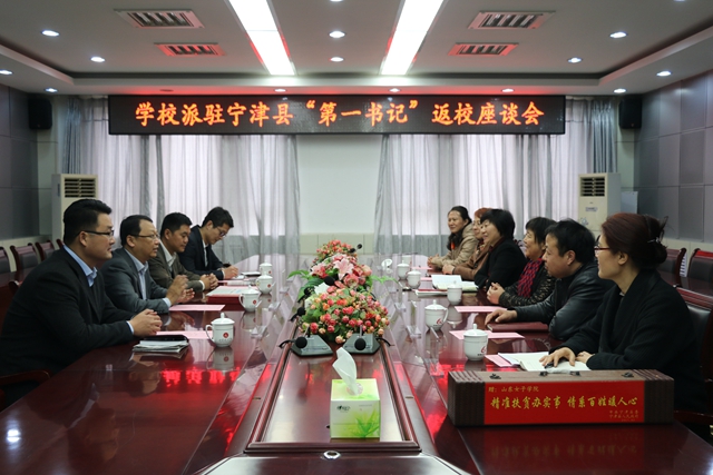 郭翠芬代表学校党委对3名第一书记圆满完成帮扶任务表示祝贺。郭翠芬指出,第一书记工作是省委抓党建、促脱贫的重要举措,是省委交给学校的重要政治任务,也是改进机关作风、培养锻炼干部的有效途径。学校党委高度重视,充分发挥教育行业优势,利用学校的便利条件给予第一书记有力支持。同时,郭翠芬对宁津县各级政府及伍大庄村、小王村和红庙村三个帮扶村的两委班子对第一书记工作高度重视和大力支持表示衷心感谢。她表示,下一步学校将继续关注、支持宁津县的发展,加强校地联系,发挥教学、科研优势,助力基层建设。郭翠芬勉励第一书记在返校后要立足岗位,把帮扶工作中学到的好品质、好作风、好经验运用起来,为学校作出新的贡献。同时,还要积极与第三轮第一书记沟通交流,做好传帮带工作。