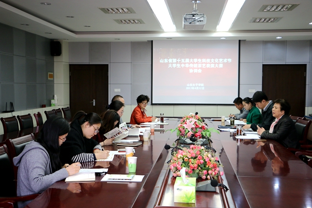 4月12日,学校在第三会议室召开“第十五届山东省大学生科技文化艺术节·大学生中华传统茶艺表演大赛”协调会,学校党委副书记宿建沛出席会议,旅游学院、团委、宣传部、后勤处、科技产业处、保卫处等部门相关负责人参加会议。